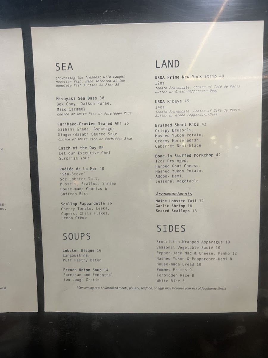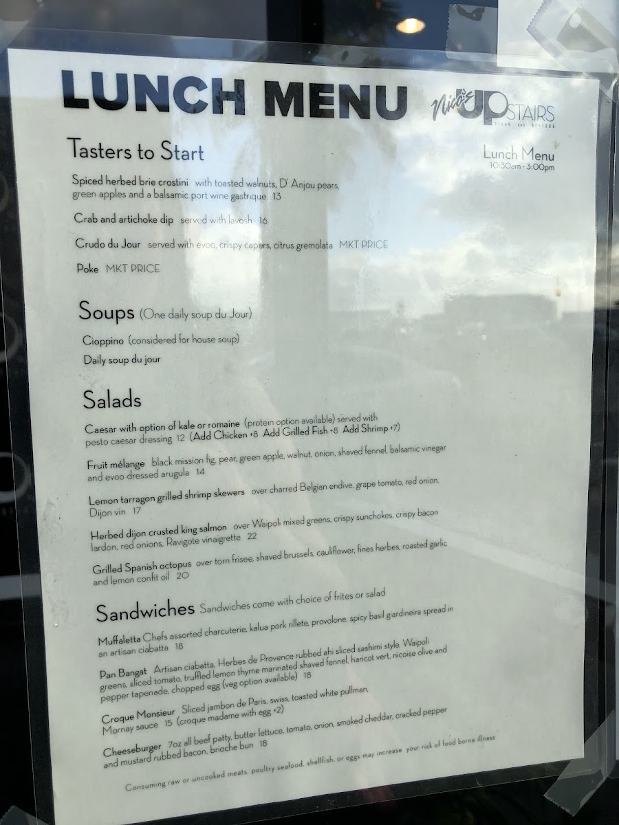 Introducing the menu at Upstairs at Pier 38, a culinary gem in Honolulu, Hawaii, is a journey into refined dining with French influence. Guests rave about the exquisite flavors and presentation that grace every plate. The Misoyaki Sea Bass, with its perfect balance of crispy skin and a rich miso-caramel sauce, is a standout. Patrons also delight in the Poelee De La Mer, likening it to an elevated French paella. For starters, the Spanish Octopus and French Onion Soup are must-tries, providing a symphony of textures and tastes that reflect the restaurant’s commitment to quality. Desserts like the tart trio and Basque Cheesecake complete the experience, ensuring each meal ends on a high note. With attentive service and a welcoming atmosphere, Upstairs at Pier 38 is the place to savor unforgettable meals and create lasting memories.