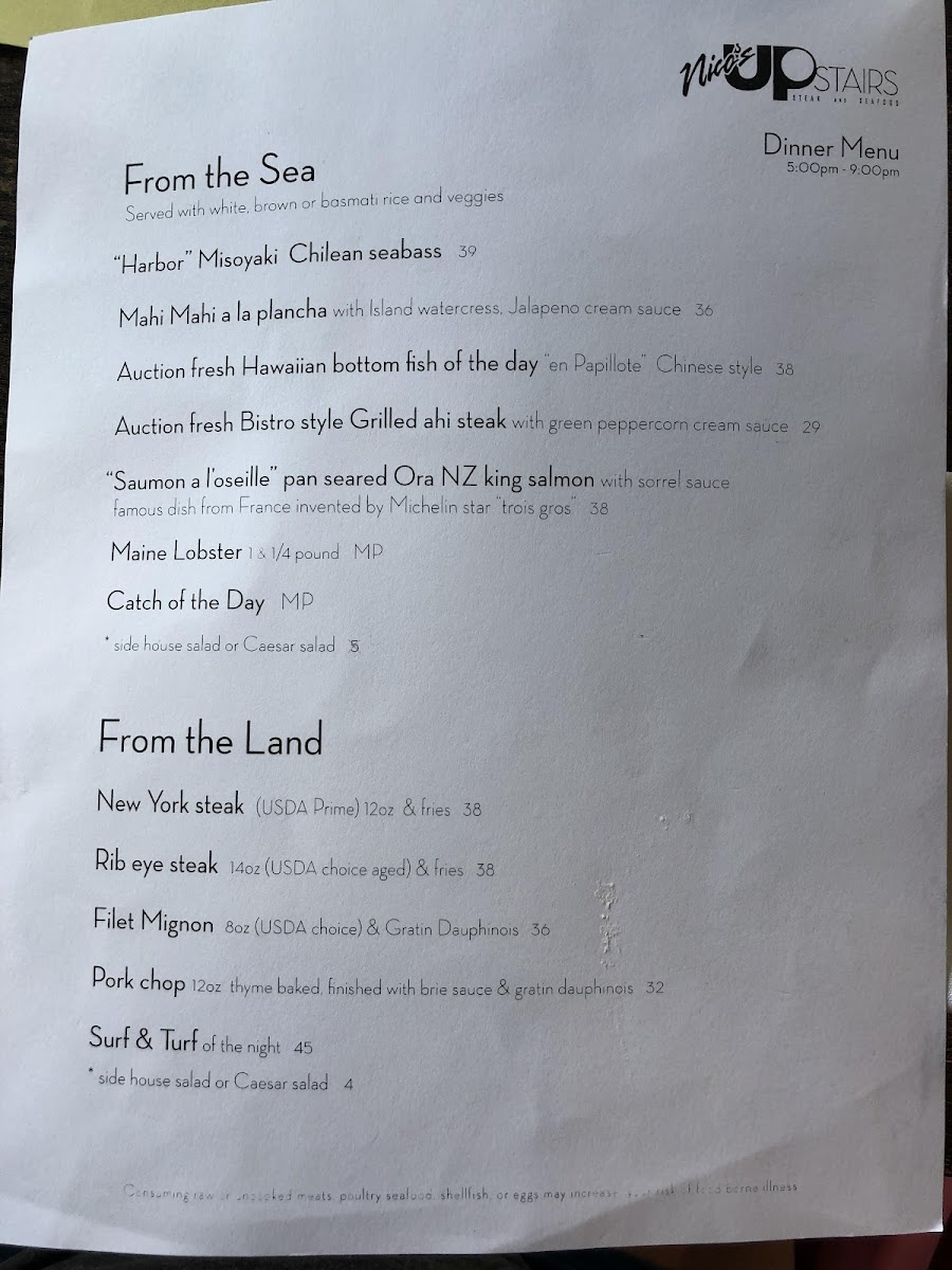 Upstairs at Pier 38 Menu (Update 2025)